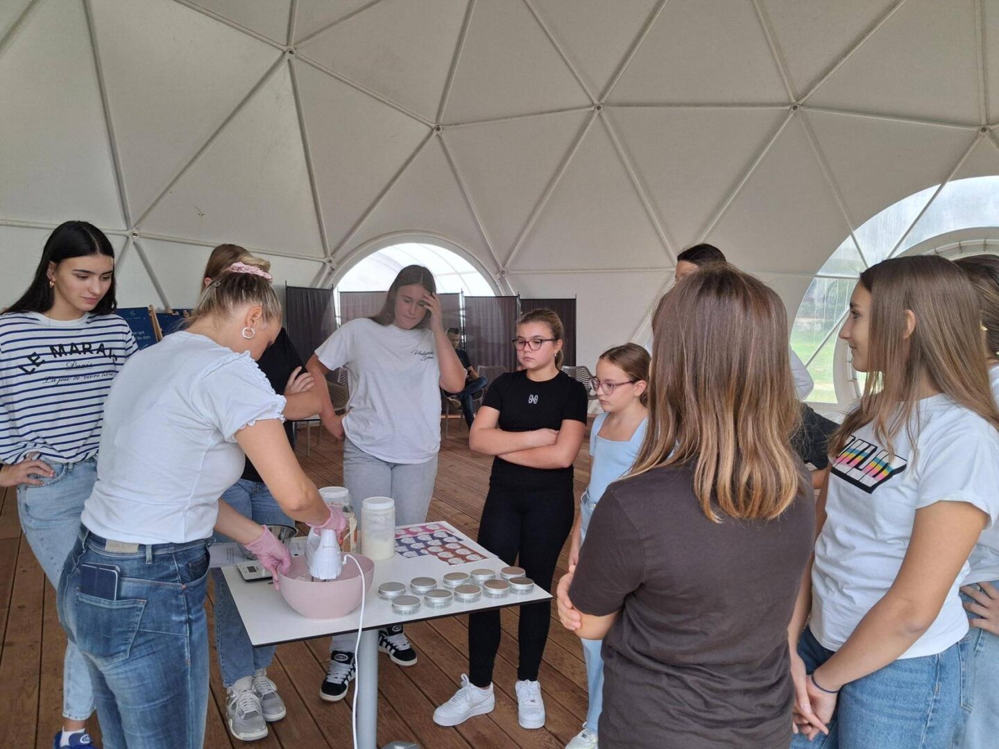I ove godine bili smo u Istri, U Balama u Paleo Parku. Sudjelovali smo na radionici prirodne kozmetike u suradnji s Prehrambeno-tehnološkim fakultetom iz Osijeka i naučili kako napraviti prirodni sapun, balzam za usne, piling za tijelo, cinkovu pastu, “antistress” roll-on parfem i šumeću kuglicu za kupanje. Naša učiteljica kemije Martina Jakopčević bila je s nama cijelo vrijeme i pomogla nam u svemu. Svaka stvar koju smo radili billa je jako zanimljiva, a posebno nam je bilo drago drago što smo proizvode mogli odnijeti kući. Uz nas još su bile dvije škole: OŠ. Vladimira Nazora, OŠ. Jurja Klovića. Bilo nam je zabavno i poučno. Nadamo se da ćemo ići i sljedeće godine.